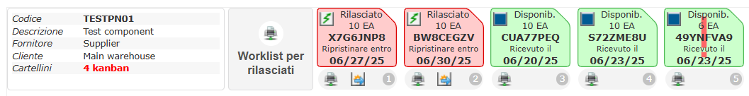 - If the total quantity is not sufficient, the card generates a new replenishment cycle and is therefore released with the standard quantity for the loop, in order to restore the correct stock level.